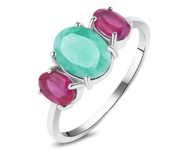 Кольцо, изумруд берилл , рубин корунд, Вивьен
