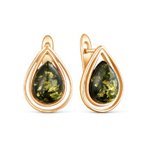 Серьги из золочёного серебра с натуральным прессованным янтарём 925 пробы 220042