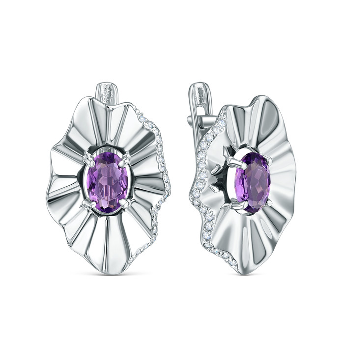 Совместные покупки Нижний Тагил Ювелирные украшения и бижутерия Серьги — Серьги из серебра с аметистом и фианитами родированные 2-3871-001