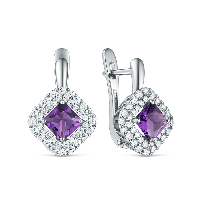 Совместные покупки Нижний Тагил Ювелирные украшения и бижутерия Серьги — Серьги из серебра с аметистом и фианитами родированные С50083р401