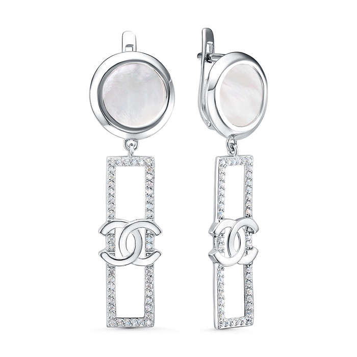 Совместные покупки Нижний Тагил Ювелирные украшения и бижутерия Серьги — Серьги из серебра с белым перламутром и фианитами родированные 925 пробы С-4532-