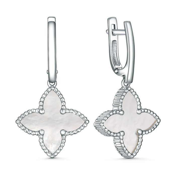 Совместные покупки Нижний Тагил Ювелирные украшения и бижутерия Серьги — Серьги из серебра с белым перламутром родированные - Четырёхлистники 221-10-116-