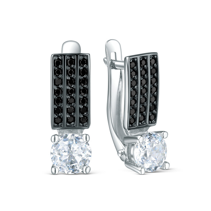 Серьги из серебра с бриллианитом и фианитами родированные 222-10-086р