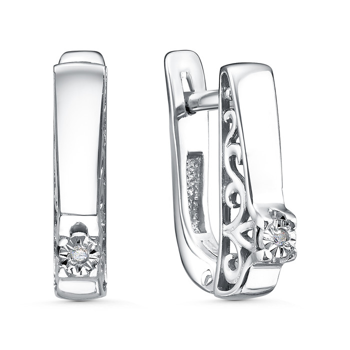 Серьги из серебра с бриллиантом родированные 925 пробы 12-0653