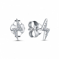 Серьги из серебра с чёрной керамикой и фианитами родированные