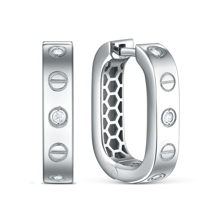 Серьги из серебра с фианитами родированные 421-10-29р