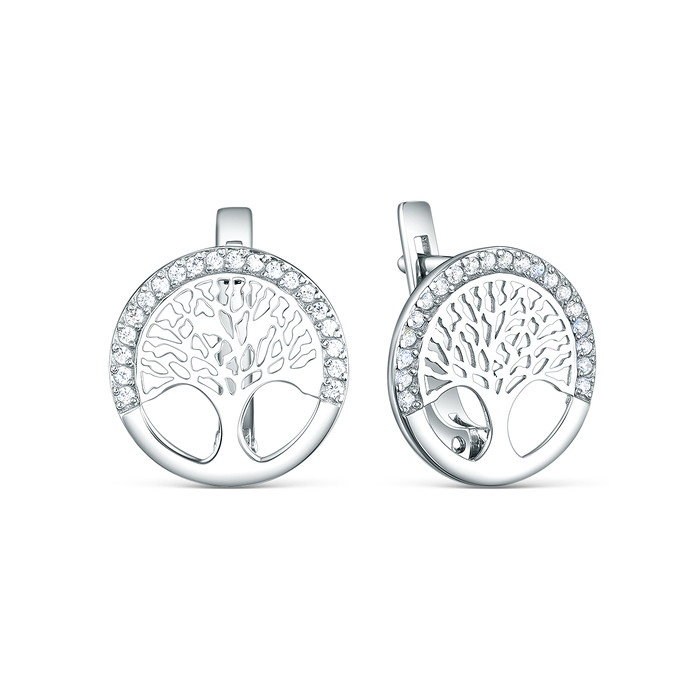 Совместные покупки Нижний Тагил Ювелирные украшения и бижутерия Серьги — Серьги из серебра с фианитами родированные - Дерево жизни 925 пробы С-4857-Р