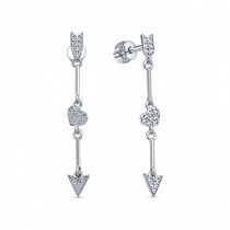 Серьги из серебра с фианитами родированные - Сердца 221-10-184р