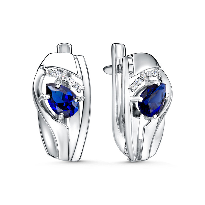 Серьги из серебра с гидротермальным сапфиром и фианитами родированные 2-4134-001