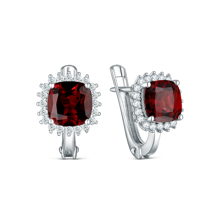 Совместные покупки Нижний Тагил Ювелирные украшения и бижутерия Серьги — Серьги из серебра с гранатом и кубическим цирконием родированные 925 пробы GTE-3