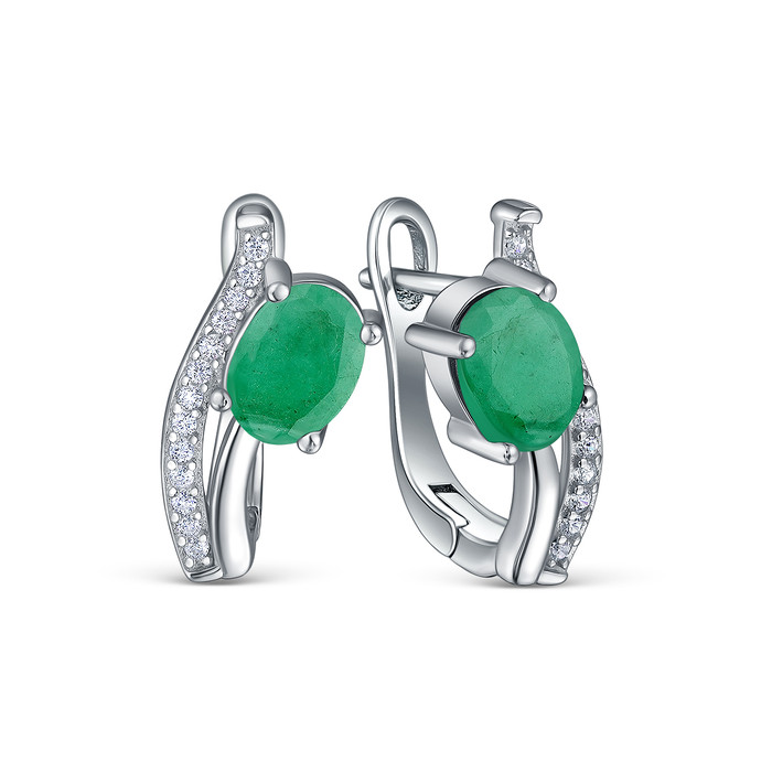 Совместные покупки Нижний Тагил Ювелирные украшения и бижутерия Серьги — Серьги из серебра с изумрудом и кубическим цирконием родированные 925 пробы GTE-