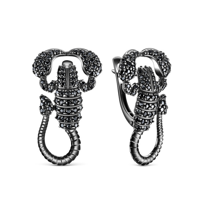 Серьги из серебра с натуральной шпинелью родированные - Скорпионы 925 пробы С-76