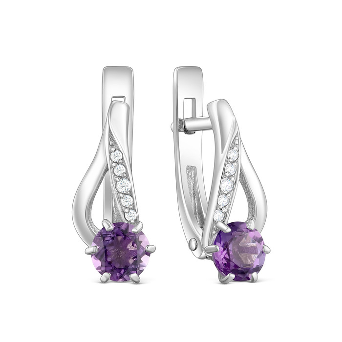 Серьги из серебра с натуральным аметистом и фианитами родированные 925 пробы 2-3