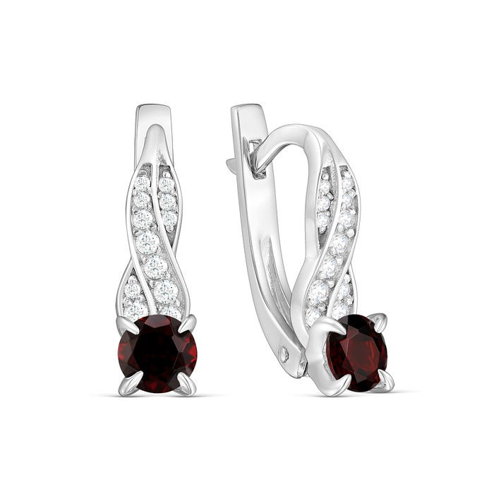 Совместные покупки Нижний Тагил Ювелирные украшения и бижутерия Серьги — Серьги из серебра с натуральным гранатом и фианитами родированные 925 пробы 2-36