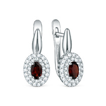 Серьги из серебра с натуральным гранатом родированные 925 пробы 14500GRRH