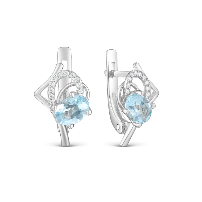 Серьги из серебра с натуральным топазом и фианитами родированные 925 пробы 2-449