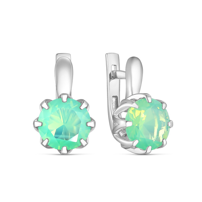 Серьги из серебра с плавленым кварцем цвета лунный мятный родированные 925 пробы