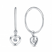 Серьги из серебра с рубином и кубическим цирконием родированные