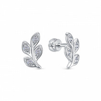 Серьги из серебра с сапфиром и кубическим цирконием родированные