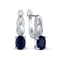 Совместные покупки Нижний Тагил Ювелирные украшения и бижутерия Серьги — Серьги из серебра с сапфиром и кубическим цирконием родированные 925 пробы GTE-0