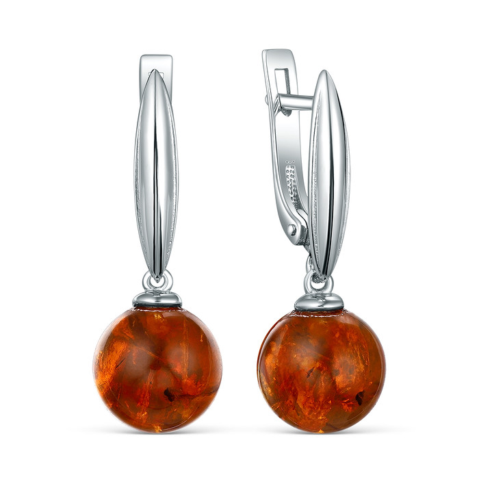 Серьги из серебра с янтарём родированные 04-802-0071-12
