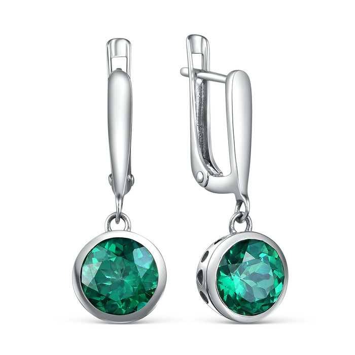 Серьги из серебра с зелёным топазом родированные 925 пробы GTE-3327-T