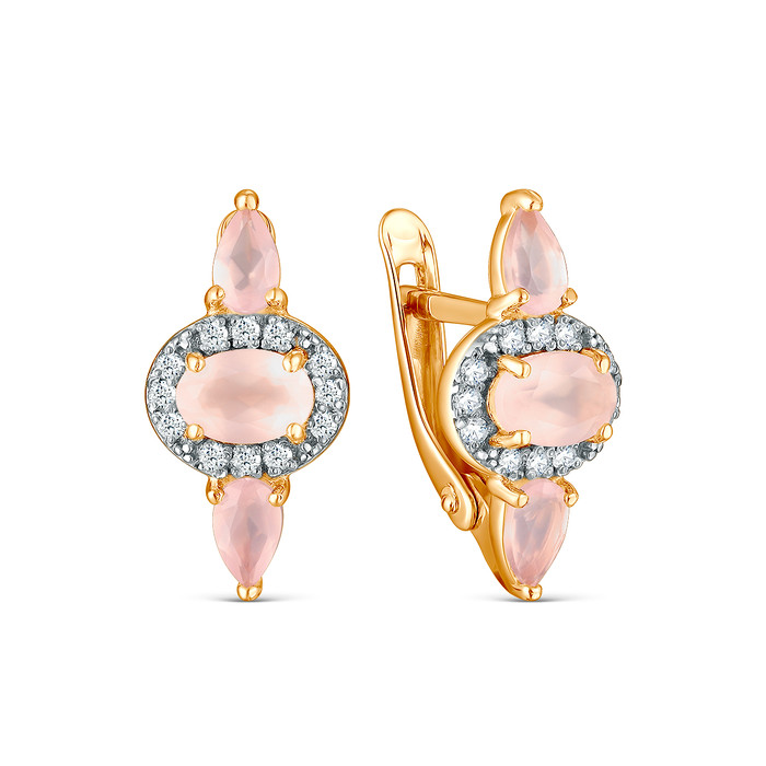 Серьги из золочёного серебра с агатом, частичным родированием и фианитами 925 пр