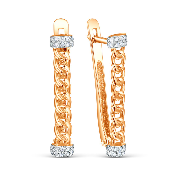 Серьги из золочёного серебра с фианитами и родированием - Цепи 925 пробы 05-302-