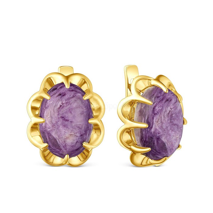 Совместные покупки Нижний Тагил Ювелирные украшения и бижутерия Серьги — Серьги из золочёного серебра с нат.чароитом