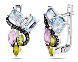 Серьги, морганит , перидот , топаз , нанорубин, Бернарда