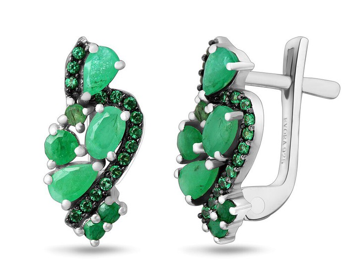 Серьги, арт.656828 Серебро Серебро 925, 3,98 гр., изумруд берилл , наноизумруд