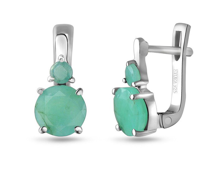 Серьги, арт.655244 Серебро Серебро 925, 2,6 гр., изумруд берилл