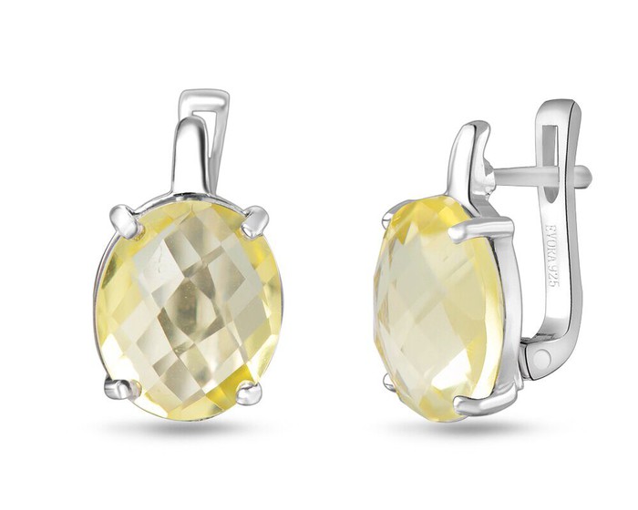 Серьги, арт.655213 Серебро Серебро 925, 4,05 гр., лимонный топаз