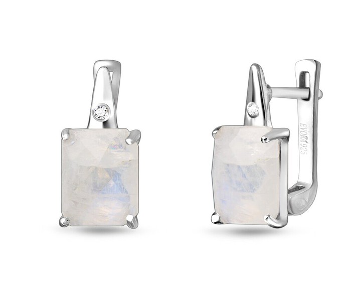 Серьги, арт.655231 Серебро Серебро 925, 3,35 гр., лунный камень