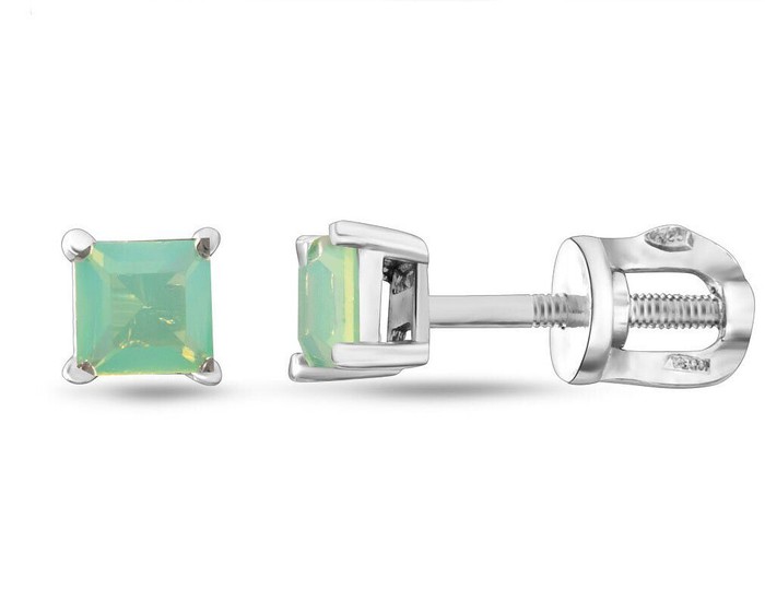 Серьги, арт.654739 Серебро Серебро 925, 1,39 гр., лунный камень зеленый