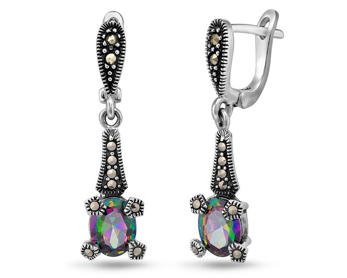 Серьги, арт.656485 Серебро Серебро 925, 6,75 гр., марказит , мистик кварц
