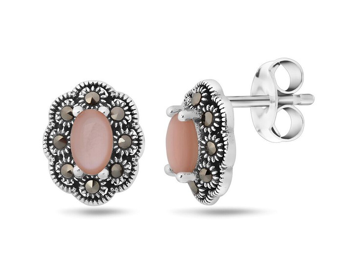 Совместные покупки Нижний Тагил Ювелирные украшения и бижутерия Серьги — Серьги, марказит , перламутр розовый, SL-LNJ342