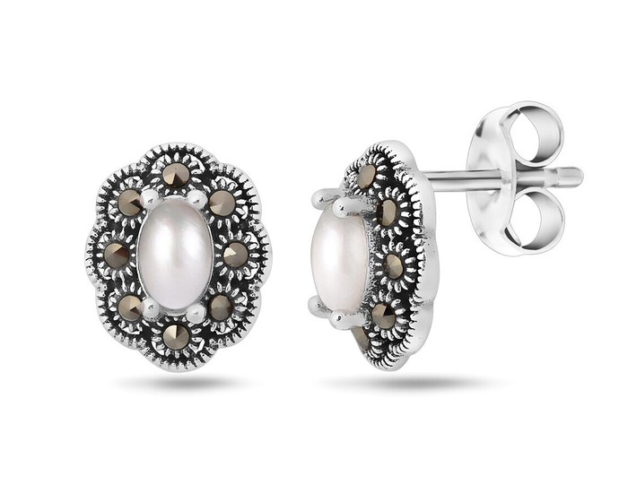 Серьги, арт.656509 Серебро Серебро 925, 2,15 гр., марказит , перламутр