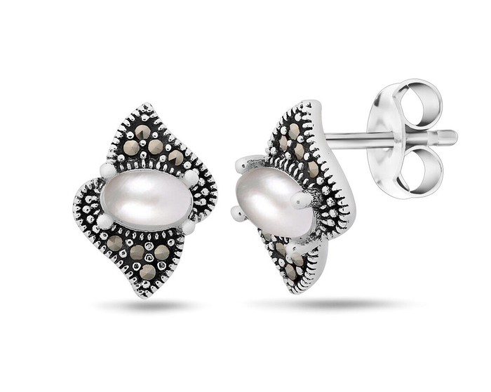 Серьги, арт.656511 Серебро Серебро 925, 1,88 гр., марказит , перламутр