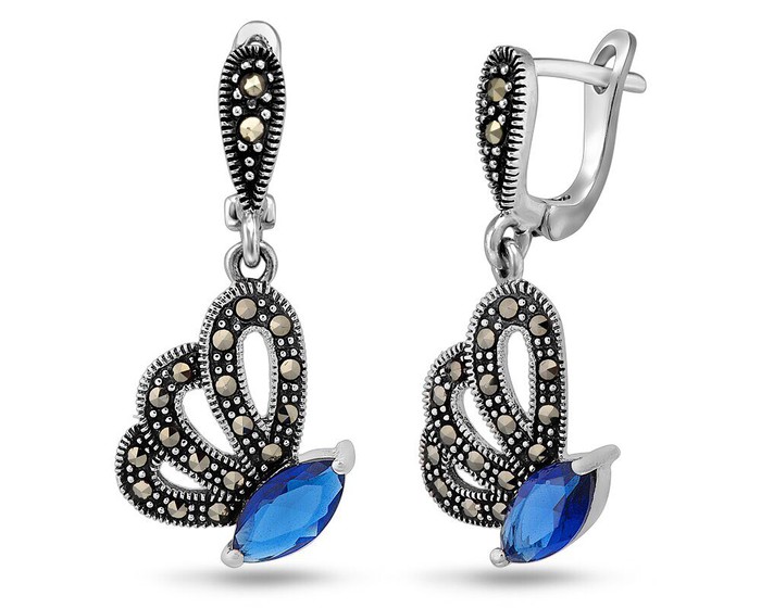 Серьги, арт.656487 Серебро Серебро 925, 6,89 гр., марказит , синт.сапфир