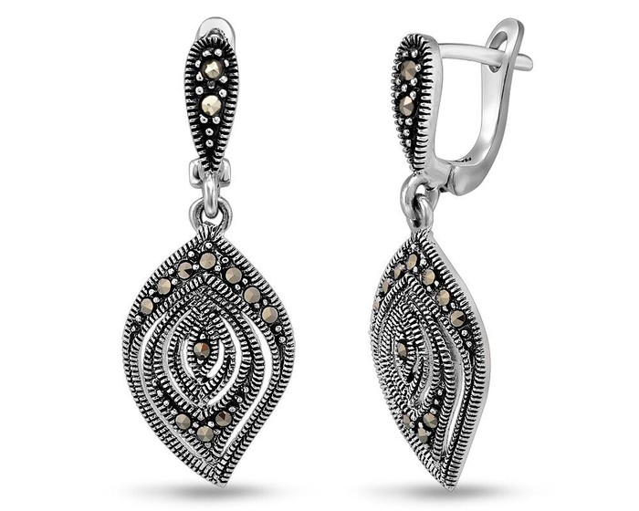 Серьги, арт.656478 Серебро Серебро 925, 7,55 гр., марказит