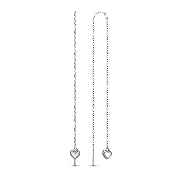 Серьги-продёвки из серебра родированные - Сердца (длина всего изделия 18 см) 925