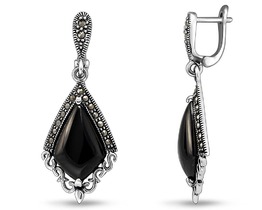 Серьги, марказит , оникс, SL-AGA629