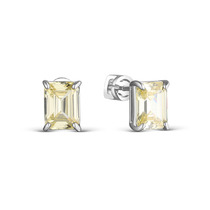 Серьги-пусеты женские из серебра с жёлтыми прямоугольными бриллианитами родирова