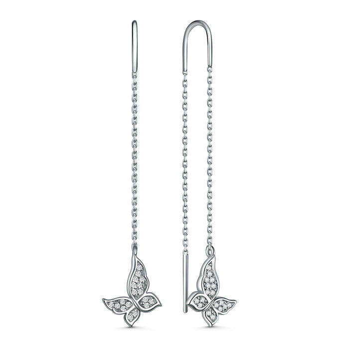 Совместные покупки Нижний Тагил Ювелирные украшения и бижутерия Серьги — Серьги-продёвки из серебра с фианитами родированные - Бабочки С-4962-Р