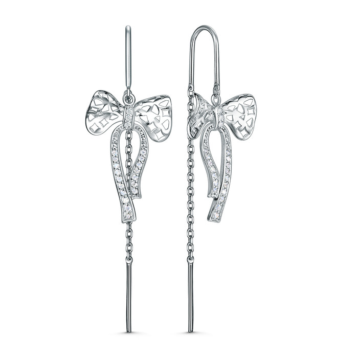 Совместные покупки Нижний Тагил Ювелирные украшения и бижутерия Серьги — Серьги-продёвки из серебра с фианитами родированные - Банты 221-10-269р