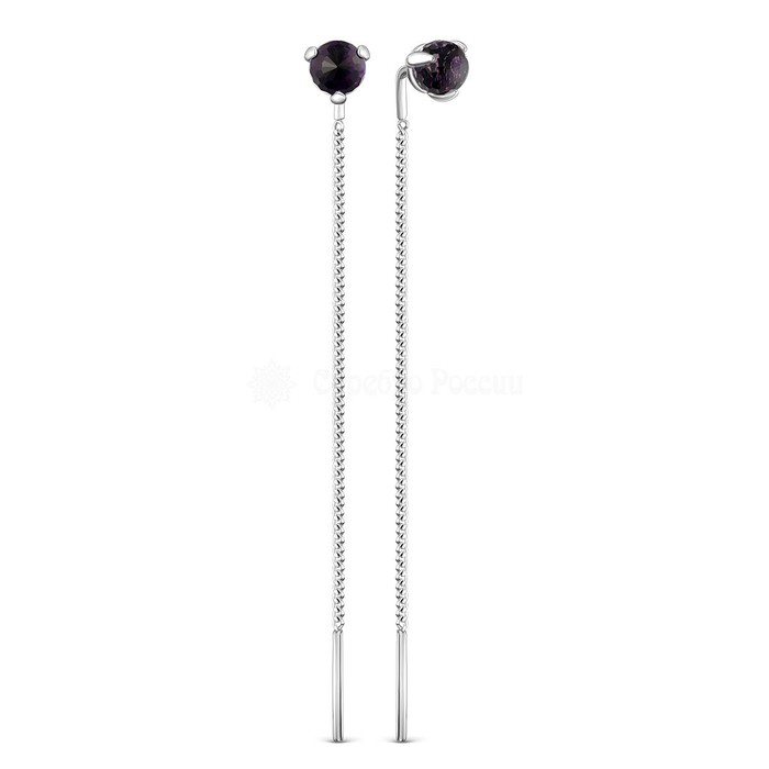 Серьги-продёвки из серебра с кристаллами премиум Австрия фиолетовый родированные