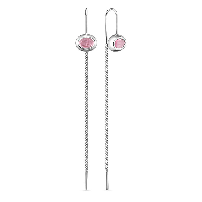 Серьги-продёвки из серебра с розовыми фианитами родированные 925 пробы 110026_01
