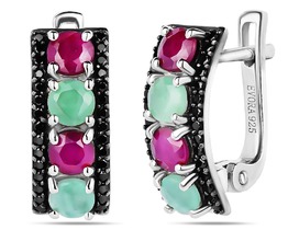 Серьги, изумруд берилл , рубин корунд , шпинель, Милана