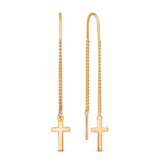 Серьги-продёвки кресты из золочёного серебра 925 пробы 2-568з